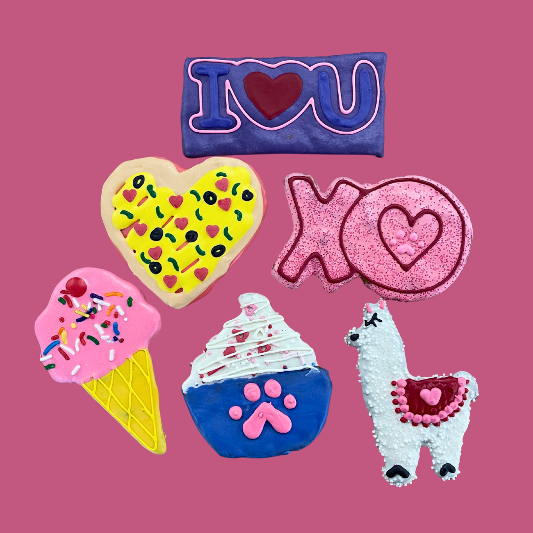 Each of our large cookies is hand made and decorated by our incredible bakery team! Designs change often, so will vary from what's shown. No matter what, though, they'll be gorgeous and make your dog's tail wag!