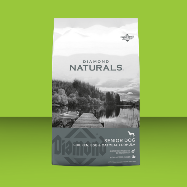 Watching your furry friend's face become sugar-white can bring a bittersweet feeling. Continue to support your senior dog's health and happiness with Diamond Naturals Senior Dog Chicken, Egg, & Oatmeal Formula. This recipe is specifically designed to meet the unique needs of aging dogs, with carefully balanced protein and fat levels to support their vitality, as well as glucosamine and chondroitin for joint health. Bring that pep back to your dog’s step with Diamond Naturals Senior blend as they enter their golden years.