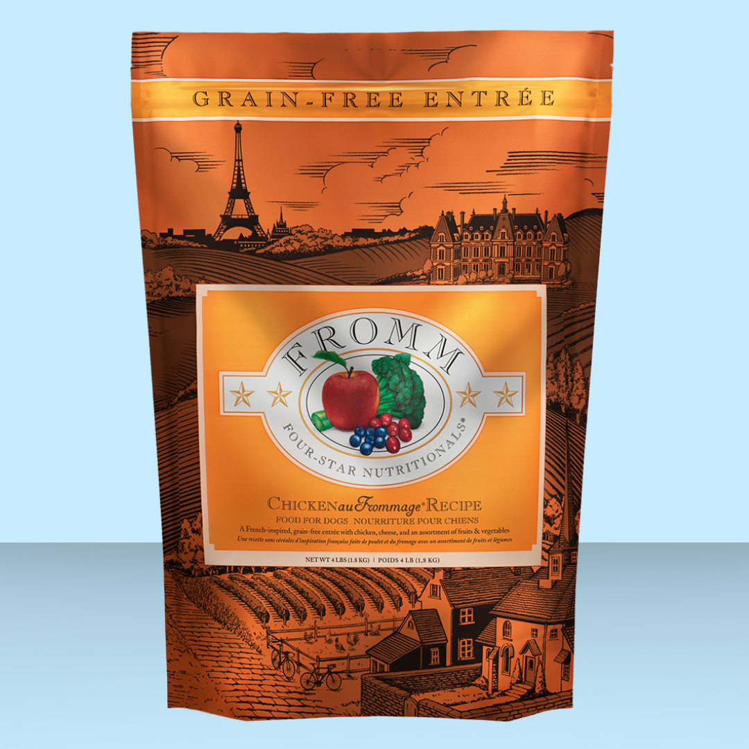 Say “Bonjour” to gourmet goodness with Fromm’s Chicken Au Frommage, a French-inspired entrée featuring high-quality chicken, creamy cheese, and a colorful assortment of fruits and veggies! This delectable dish offers digestible protein, essential amino acids, and nutrient-rich ingredients to support digestion, immunity, and overall health. Enhanced with probiotics for digestive regularity, it's perfect for dogs of all breeds and ages. Let your dog experience a true “joie de vivre” with this delicious blend today!