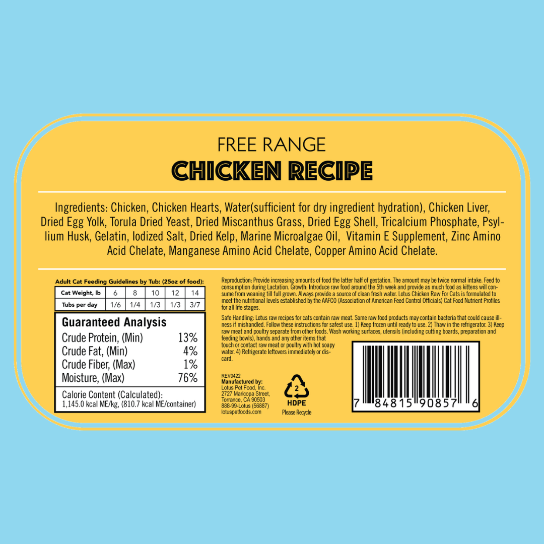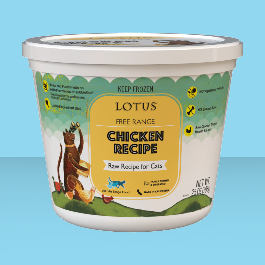 Serve up what your cat craves with Lotus's Raw Chicken! With plenty of chicken organs, this recipe is a great source of taurine, and is made in small batches to ensure the best quality.