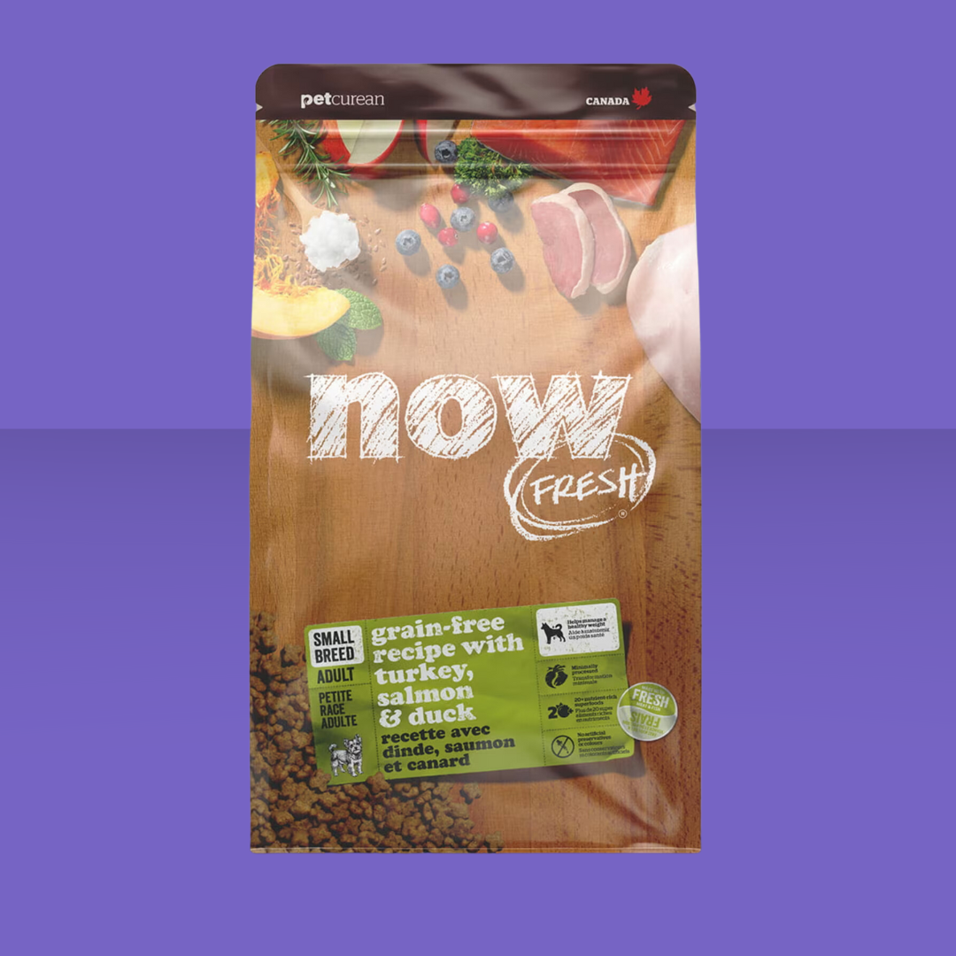 Now Fresh by Petcurean specializes in formulating safe recipes for pets with the best ingredients possible and minimal processing- and they work with vets and pet nutritionists to make sure every formula is perfectly balanced for those needs. With various kibble sizes and protein options, there’s something for every pet's palate!