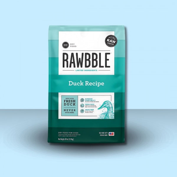 Rawbble Duck Recipe is the perfect solution for the picky pup! This kibble is freeze-dried coated for a boost of raw flavor! They add whole food ingredients and cook at low temperatures without commonly found by-products like poultry meals to deliver drool-worthy flavor and nutrition. Each recipe is tested for high digestibility, ensuring your pup gets the most nutrition out of their bowl!