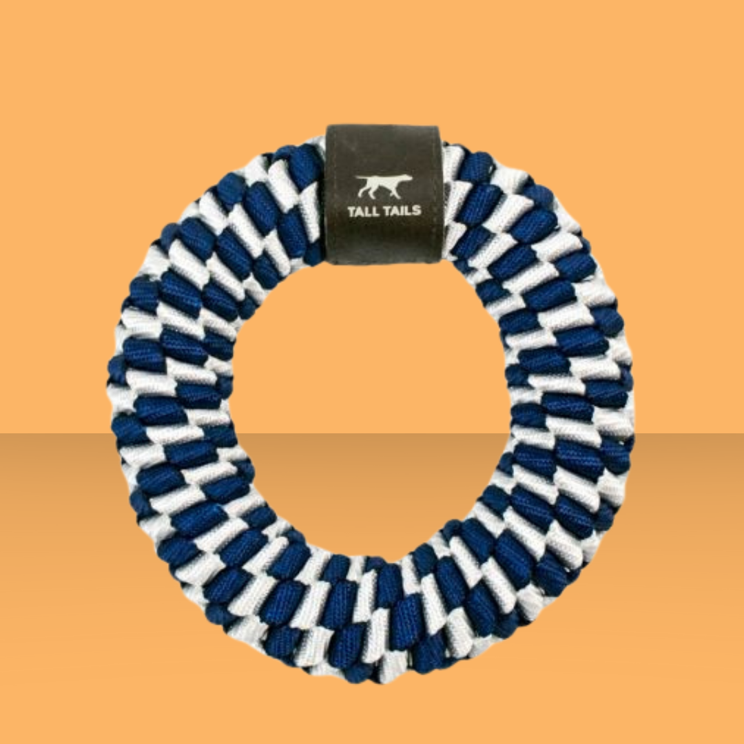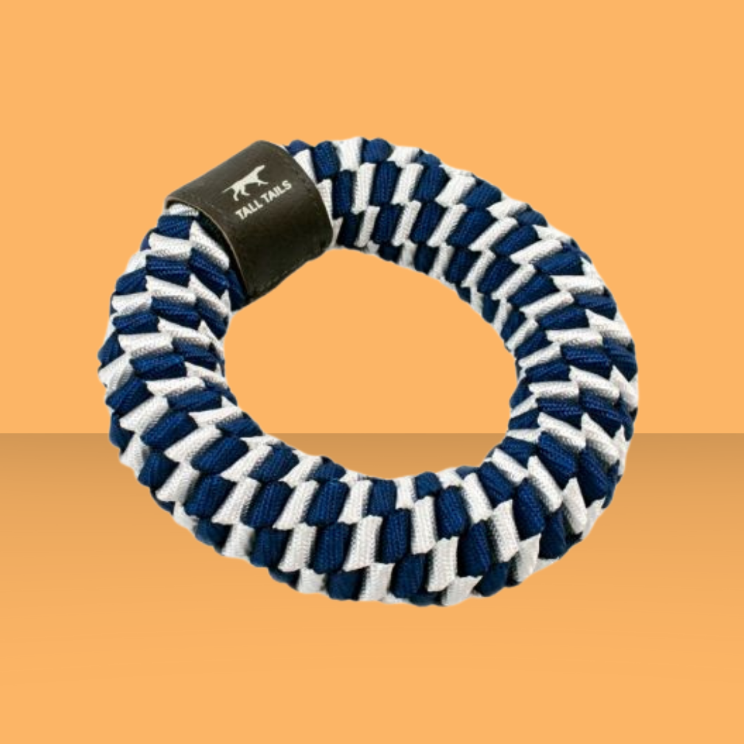 This resiliant braided polyester will hold up to rigorous tug of war games! Being braided gives it a fun elasticity as it's pulled, and the shape makes it super easy to toss for games of fetch.