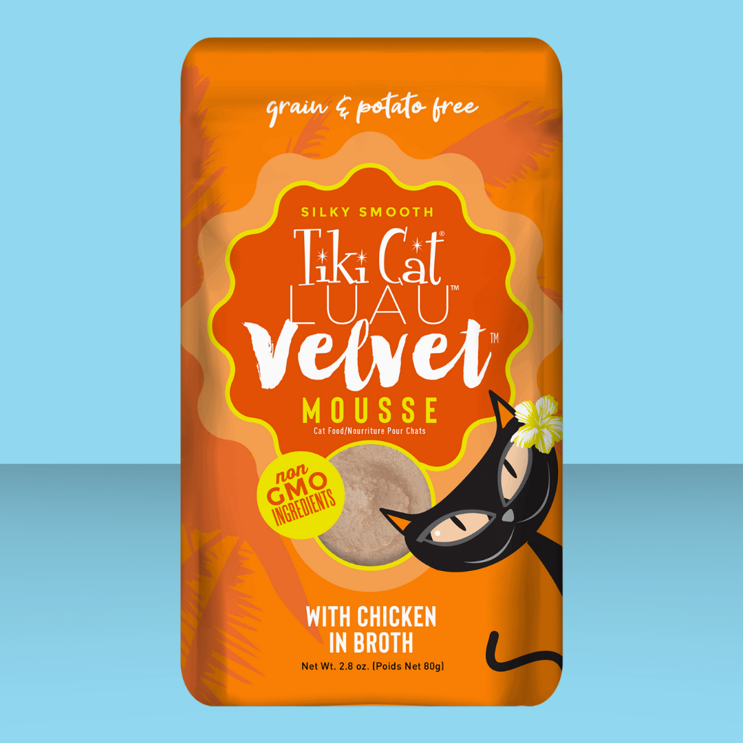 Tender chicken, chicken broth and sunflower oil blended into a creamy mousse cats love! It's potato and grain free, super silky smooth, and a great way to get more moisture into your kitty's diet.