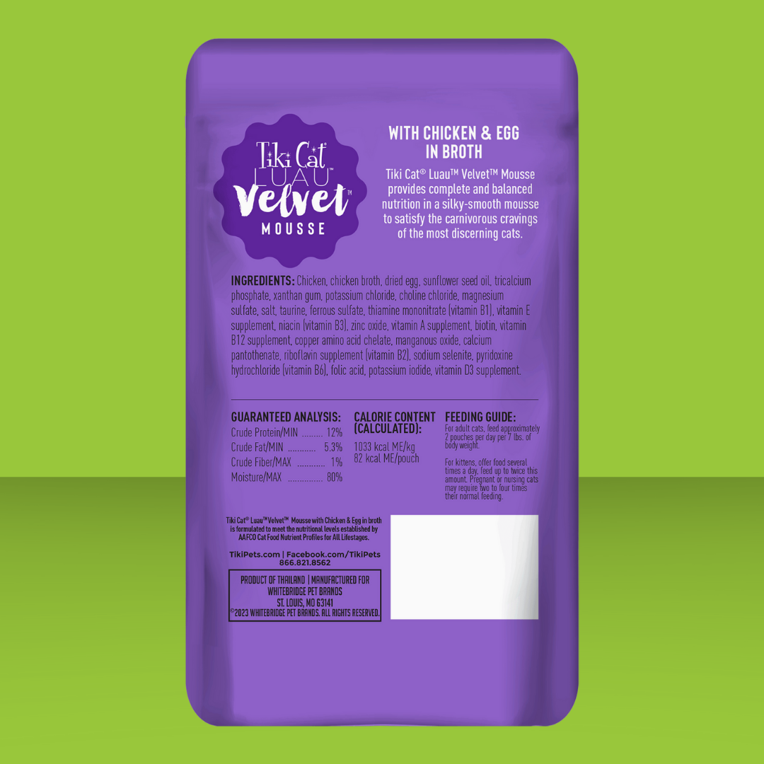 Tender chicken, chicken broth, egg and sunflower oil blended into a creamy mousse cats love! It's potato and grain free, super silky smooth, and a great way to get more moisture into your kitty's diet.