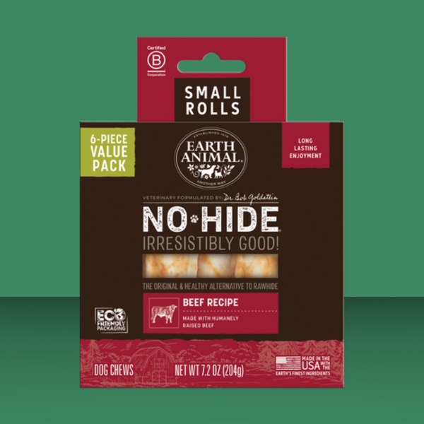 Dogs love to chew, but rawhide isn't very safe, often filled with chemicals and even glue! Earth Animal No-Hides are made with rice flour and agar-agar, then covered in tasty beef- so they're extra flavorful! They soften as they're being chewed, and are fully digestible if your pup swallows any little bits. These chews are great for puppies and seniors, too!