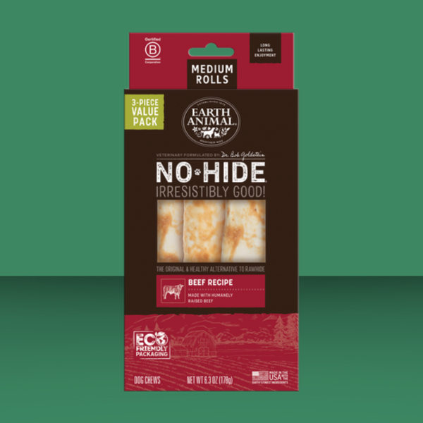 Dogs love to chew, but rawhide isn't very safe, often filled with chemicals and even glue! Earth Animal No-Hides are made with rice flour and agar-agar, then covered in tasty beef- so they're extra flavorful! They soften as they're being chewed, and are fully digestible if your pup swallows any little bits. These chews are great for puppies and seniors, too!