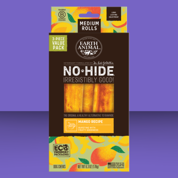 Dogs love to chew, but rawhide isn't very safe, often filled with chemicals and even glue! Earth Animal No-Hides are made with rice flour and agar-agar, then covered in tasty mango so they're extra flavorful! They soften as they're being chewed, and are fully digestible if your pup swallows any little bits. These chews are great for puppies and seniors, too!