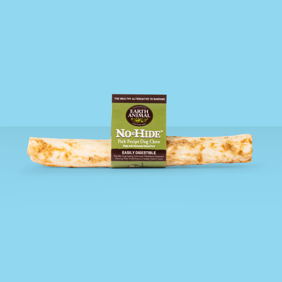 Dogs love to chew, but rawhide isn't very safe, often filled with chemicals and even glue! Earth Animal No-Hides are made with rice flour and agar-agar, then covered in tasty pork- so they're extra flavorful! They soften as they're being chewed, and are fully digestible if your pup swallows any little bits. These chews are great for puppies and seniors, too!