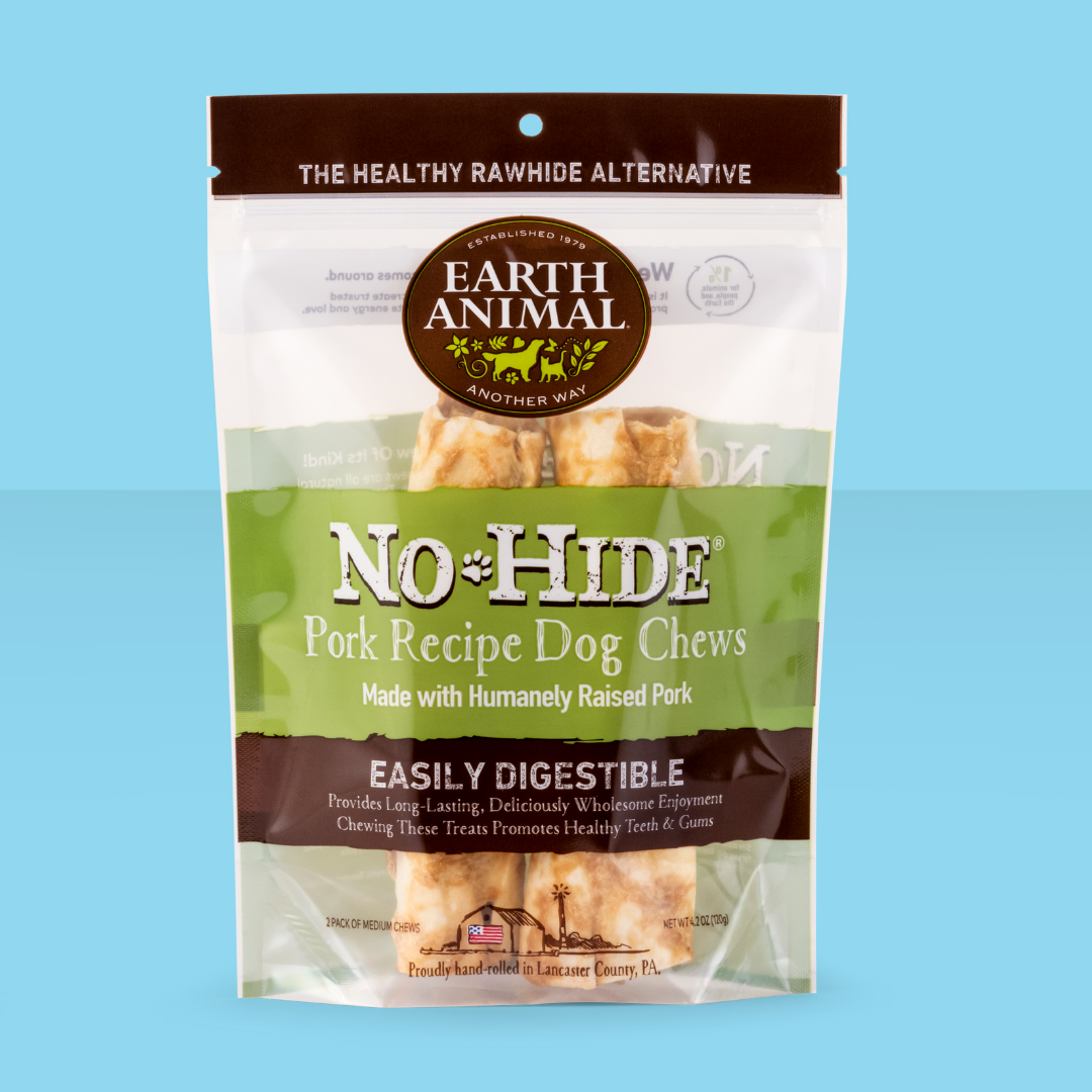 Dogs love to chew, but rawhide isn't very safe, often filled with chemicals and even glue! Earth Animal No-Hides are made with rice flour and agar-agar, then covered in tasty pork- so they're extra flavorful! They soften as they're being chewed, and are fully digestible if your pup swallows any little bits. These chews are great for puppies and seniors, too!