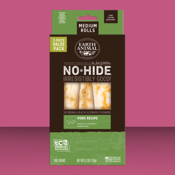 Dogs love to chew, but rawhide isn't very safe, often filled with chemicals and even glue! Earth Animal No-Hides are made with rice flour and agar-agar, then covered in tasty pork- so they're extra flavorful! They soften as they're being chewed, and are fully digestible if your pup swallows any little bits. These chews are great for puppies and seniors, too!