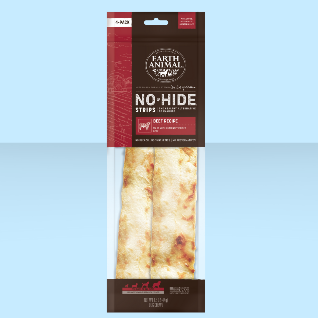 Dogs love to chew, but rawhide isn't very safe, often filled with chemicals and even glue! Earth Animal No-Hides are made with rice flour and agar-agar, then covered in tasty beef- so they're extra flavorful! They soften as they're being chewed, and are fully digestible if your pup swallows any little bits. These chews are great for puppies and seniors, too!