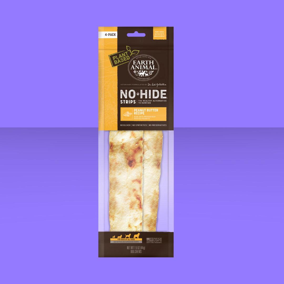 Dogs love to chew, but rawhide isn't very safe, often filled with chemicals and even glue! Earth Animal No-Hides are made with rice flour and agar-agar, then covered in tasty peanut butter- so they're extra flavorful! They soften as they're being chewed, and are fully digestible if your pup swallows any little bits. These chews are great for puppies and seniors, too!