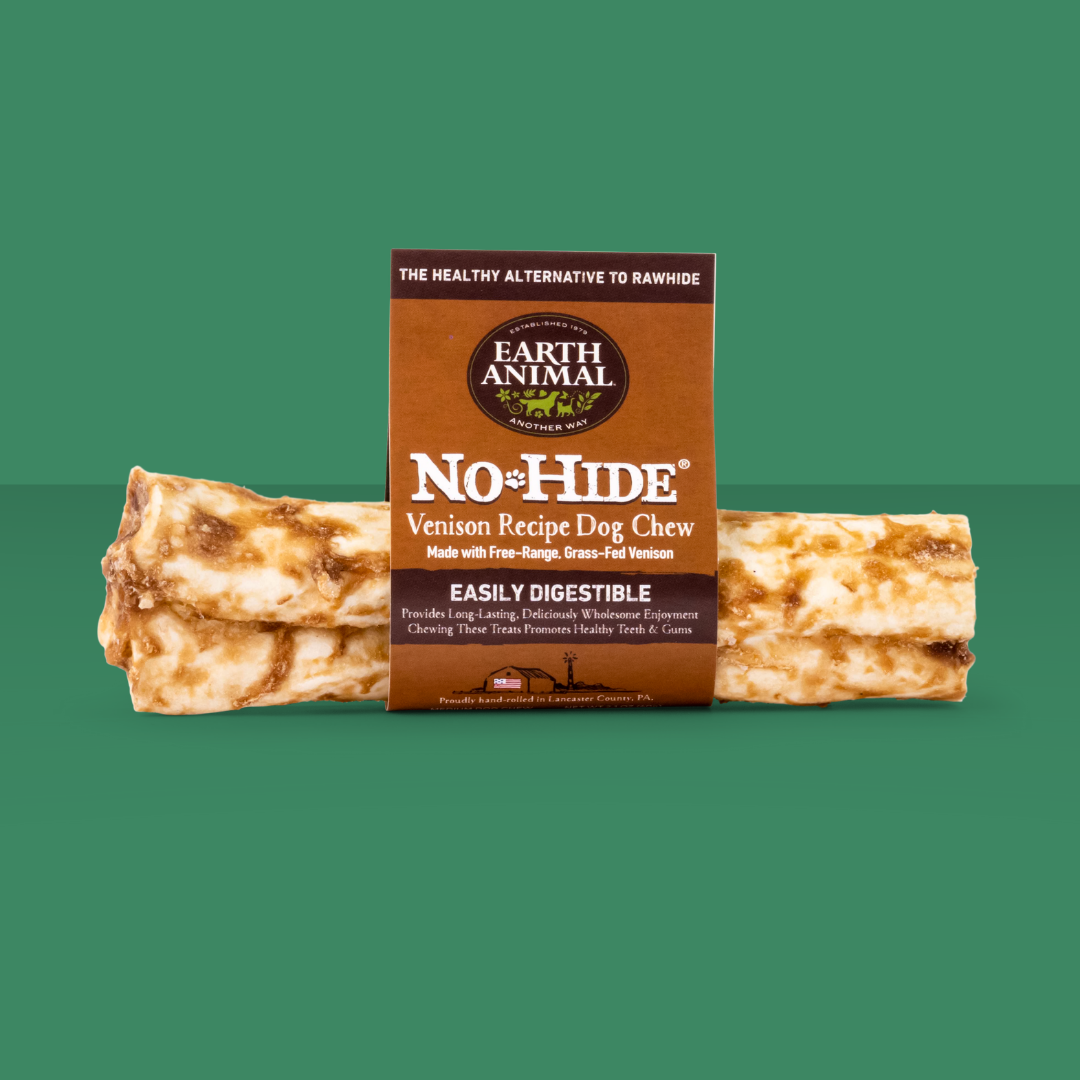 Dogs love to chew, but rawhide isn't very safe, often filled with chemicals and even glue! Earth Animal No-Hides are made with rice flour and agar-agar, then covered in tasty venison- so they're extra flavorful! They soften as they're being chewed, and are fully digestible if your pup swallows any little bits. These chews are great for puppies and seniors, too!