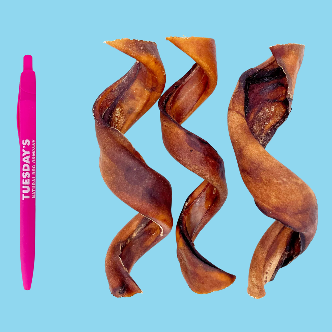 Your dog will drool once they get a sniff of these delicious chews! These Collagen Sticks are made from a layer of tissue called the dermis, which is nutritious (made of about 70% collagen) and has a firm and elastic texture. Collagen is a naturally occurring protein found in the skins, bones, and cartilage of cows. Bovine collagen may have numerous benefits, such as helping alleviate osteoarthritis symptoms, preventing bone loss, and improving skin and coat health. Since they're dried in a fun spiral shape, this chew is a great choice to keep your dog busy, and fun to pair with interactive toys!