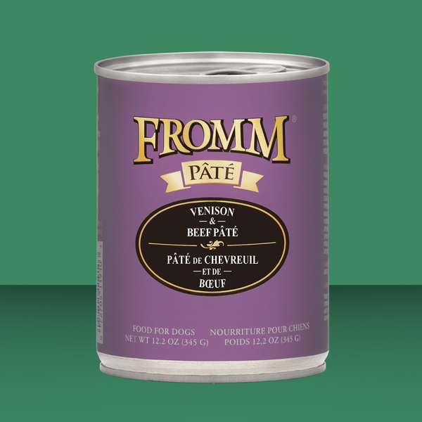 You're not the only one who loves a comfort meal every now and then! Delight your canine with Fromm Gold’s Venison & Beef Pâté, where finely minced venison and beef meet hearty potatoes, barley, and carrots. Packed with high-quality protein and enhanced moisture for hydration, this recipe supports your dog’s overall well-being without any unnecessary artificial additives. Give your furry friend a meal that's as nutritious as it is delicious with Fromm!