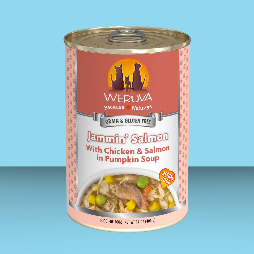 We're jammin' to the tune of boneless, skinless, white breast chicken and wild caught salmon, loaded with Omega-3s for healthy skin and coat! This tasty stew is loaded with tomatoes, green peas and sweet potato in a pumpkin soup so your pup can groove all night long. Plus, all that deliciousness is a great way to give your pooch extra hydration- which helps decrease shedding, eases digestion, and can help with urinary issues! Made from seriously good ingredients you can see, this classic recipe is crafted to please your pup at every meal.