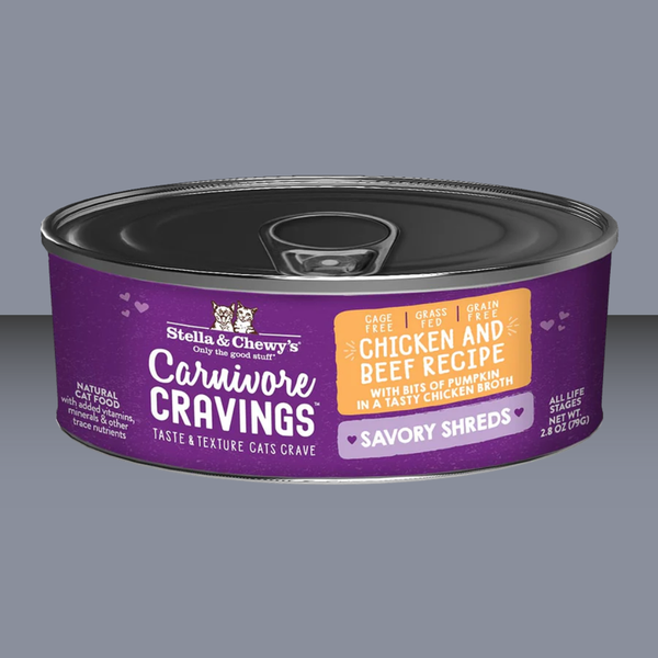 Shredded muscle meat slowly simmered in a savory high-moisture broth to deliver a special meal even the finickiest of cats will love! Give your cat what they naturally crave with the protein-rich nutrition of Stella & Chewy's Carnivore Cravings Savory Shreds.