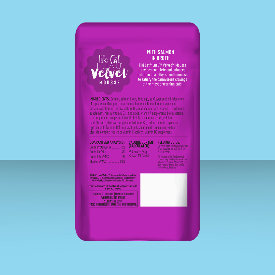Wild-caught Alaskan salmon, salmon broth and sunflower oil blended into a creamy mousse cats love! It's potato and grain free, super silky smooth, and a great way to get more moisture into your kitty's diet.