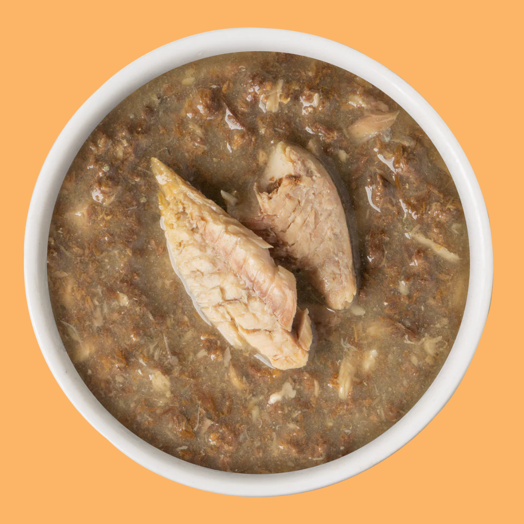A classic pairing of fish creates a recipe cats can’t resist Chunks of wild-caught tuna swims with mackerel swims in gorgeous gravy your cat will lap up with glee. Plus, all that deliciousness is a great way to give your kitty extra hydration- which helps decrease shedding, eases digestion, and can help with urinary issues! Made from seriously good ingredients you can see, this classic recipe is crafted to please your feline at every meal.
