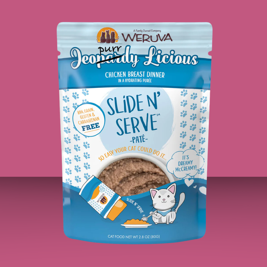 Cats can be picky about texture. For those felines that want their pates smoother than smooth, Slide N Serve is here! The pate is so smooth, yet firm enough to slide right out of the pouch in just one piece- with a little extra gravy for you to top it off with. Made with delicious cage-free chicken, we know this dinner will have your cat licking their chops!