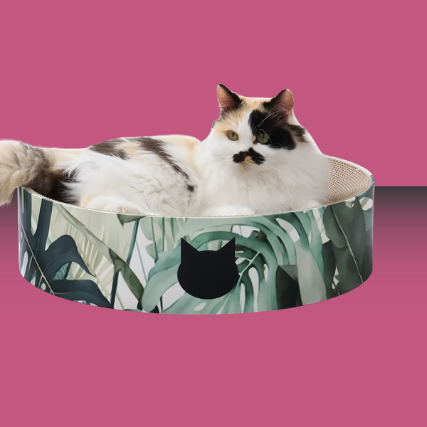 This bowl scratcher/bed is perfect for cuddling up to snooze, or scratch their cares away! It's made entirely of recycled paper, and the bowl itself can be replaced when it's looking a little shredded. It has a diameter of 19", perfect for cats who love to sprawl and stretch!
