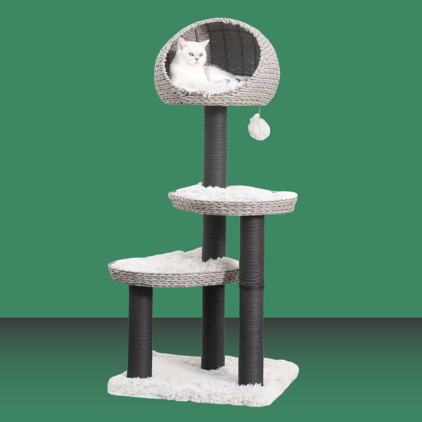 The PetPals Tundra 4-Level Cat Tree is the ultimate multi-functional tower for your active cat! This eco-friendly tree features four soft faux-fur levels and a handwoven recycled paper rope basket, providing cozy spots for relaxation. You can wash the cushions easily, to keep the cat tree looking fresh. This tree measures 50" tall and can hold 25 pounds of cat.