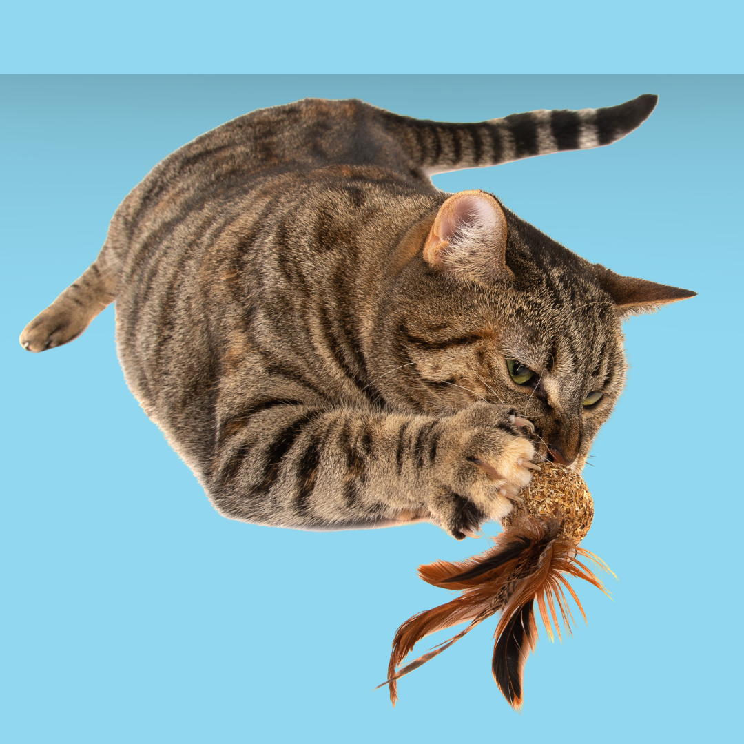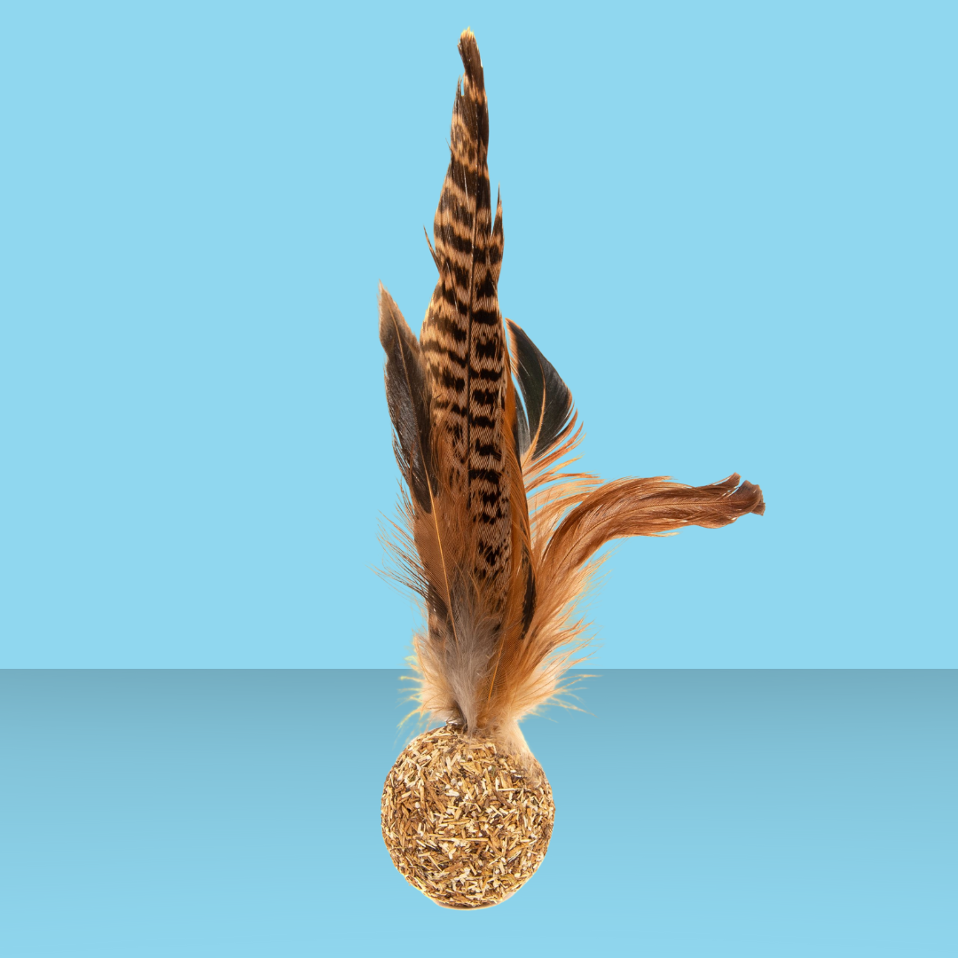 Grab the super fun toy that also doubles as a healthy treat for your purrfect feline! The ball is made of packed silvervine, which reduces stress and anxiety by encouraging playtime and natural hunting behaviors. The all natural feather waves with every bat, enticing your cat to pounce and play even more! The Silvervine Pheasant Feather Ball has been tried and tested on over 100 domestic cats and is completely cat-approved- and all you cat owners know how tough cat approval is to earn!