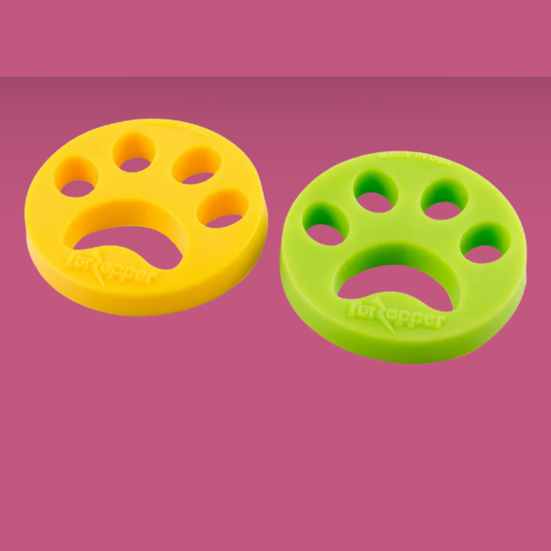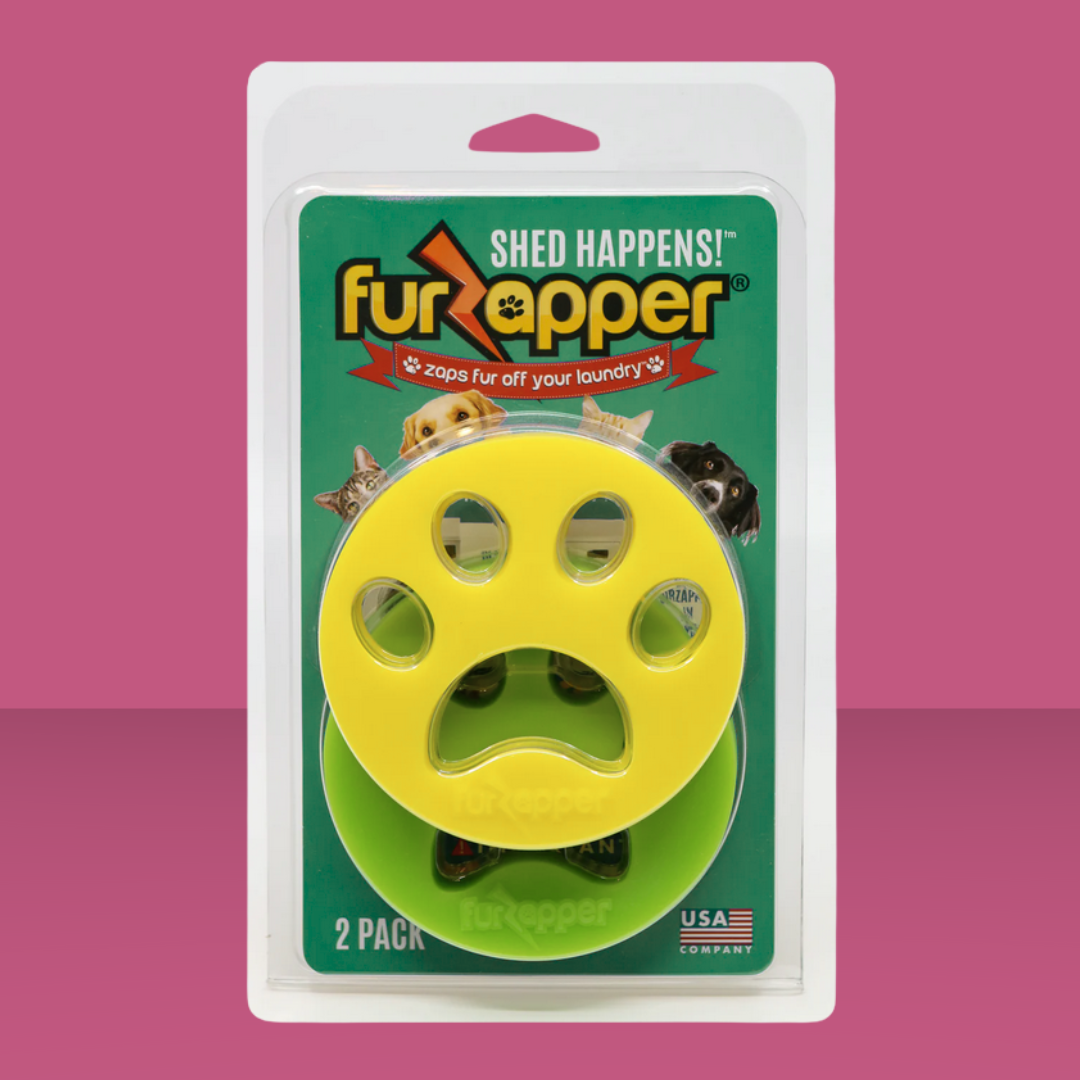 Tired of fur coating all your favorite clothes? Just toss the FurZapper in with your laundry, and enjoy a fur-free future! FurZapper is made from a very soft, tacky, flexible material that grabs dog or car fur and hair, pulls it from the clothes, and washes it down the drain or into your lint trap. It's great for larger furry households (2 or more shedding pets), and can be used both in the washer and the dryer (though we have the best luck with the dryer!) FurZappers last hundreds uses, and results in less waste than sticky-paper lint rollers. If you need double the fur removal, use two in the wash AND two in the dryer!
