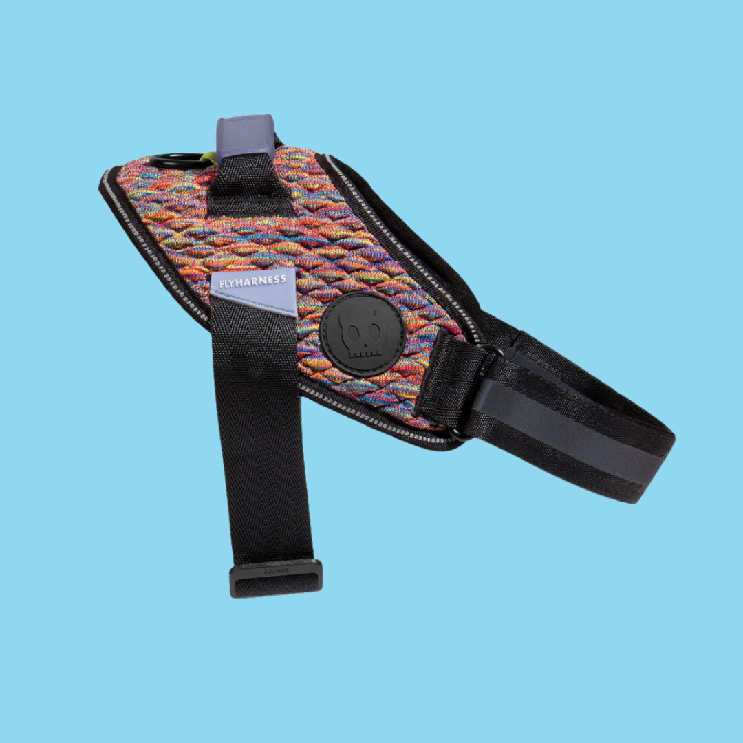 The FlyHarness is a ultra-lightweight, durable harness. Designed for the outdoors, this dog harness has a 3D knitted external layer that's used in sports sneakers and a breathable bottom mesh layer. Put this harness on with 1 easy click and give your dog a safe, comfortable harness wearing experience with reduced friction points! Added bonus- they'll know they look good.