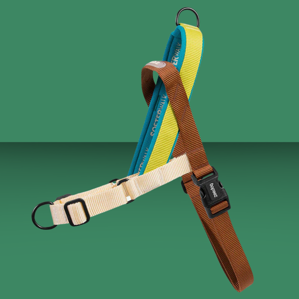 The Softer Walk Harness is a no-pull dog harness that's designed to give both your dog and you a smoother, comfortable walk. Great for dogs that pull, these harnesses come with two D-rings - one on the back and one on the front, which helps guide the dog towards you when they try to pull. The harness is completely adjustable for the perfect fit and is made from soft fabric that is comfortable on the dog's fur. There's a padded control handle on the top which can be used when needed.