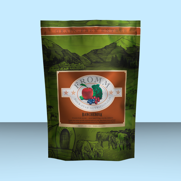 Give your dog a taste of the great outdoors with Fromm's Rancherosa Recipe! Inspired by life on the range, this satisfying entrée features high-quality beef, pork, trout, and lamb, complemented by an assortment of nutrient-rich fruits and vegetables. With essential amino acids, vitamins, and antioxidants for overall health, added probiotics ensure digestive regularity, and natural sources of collagen support joint health, this recipe is suitable for all breeds and ages. Plus, it’s interchangeable with other Four-Star recipes, making mealtime a hearty, nutritious adventure. Yeehaw!
