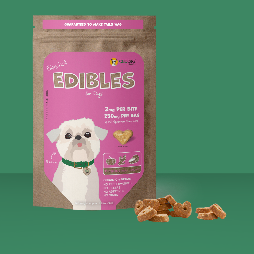 Sometimes our pets need a lil extra calm- whether it's a car ride, vet appointment, or scary thunderstorm! These treats make it easy to help em out- they taste delicious, and each treat contains 3 mg of CBD from Full Spectrum Hemp Extract, providing a consistent serving of CBD for dogs in a convenient format. The CBD will promote emotional balance and relaxation in dogs during everyday stress, and pumpkin and ginger are gentle ingredients known to support regular digestion and ease occasional digestive upset in sensitive dogs!