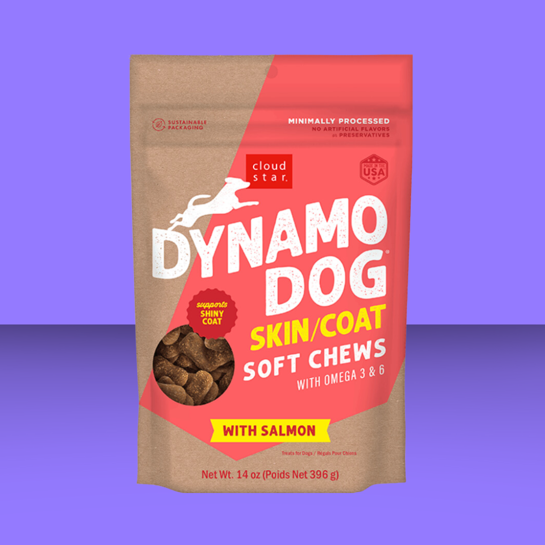 Help your dog be a dynamo with these healthy treats to help soothe your pup's skin! Made with salmon, flaxseed, and avocados each treat has a ton of Omega 3's and 6's to keep their skin and coat healthy and shiny!