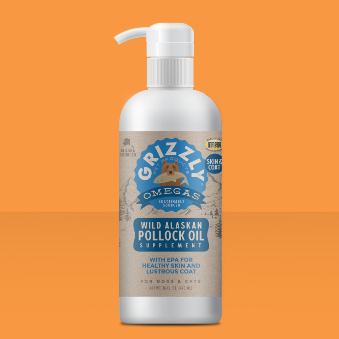 Grizzly wild pollock oil boasts a very high content of the Omega-3 fatty acid EPA and a very low Omega-6 content—making it ideal to support a healthy skin and coat. It has a pump, so it's super easy to get the right amount in your pet's food to make them feel their best!