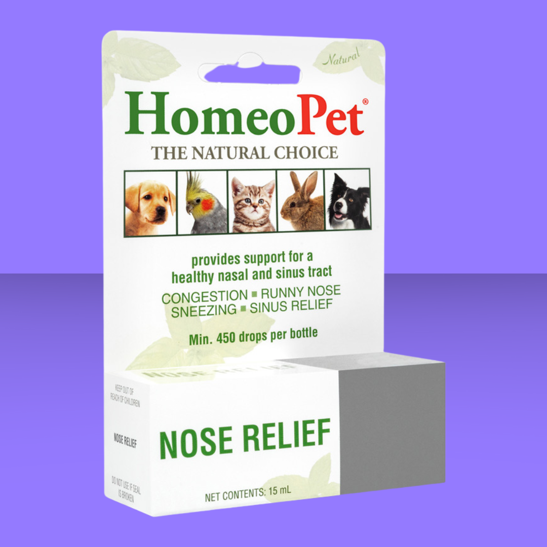 Seasonal allergies can be a sneezy, nose-running, and terrible time for our pets. This easy to use dropper offers natural sinus relief for our pets! HomeoPet Nose Relief medicine may naturally and safely help support certain nasal and sinus tract issues in pets. This easy to dose pet medicine may aid with a runny nose, watery eyes, sneezing and congestion.