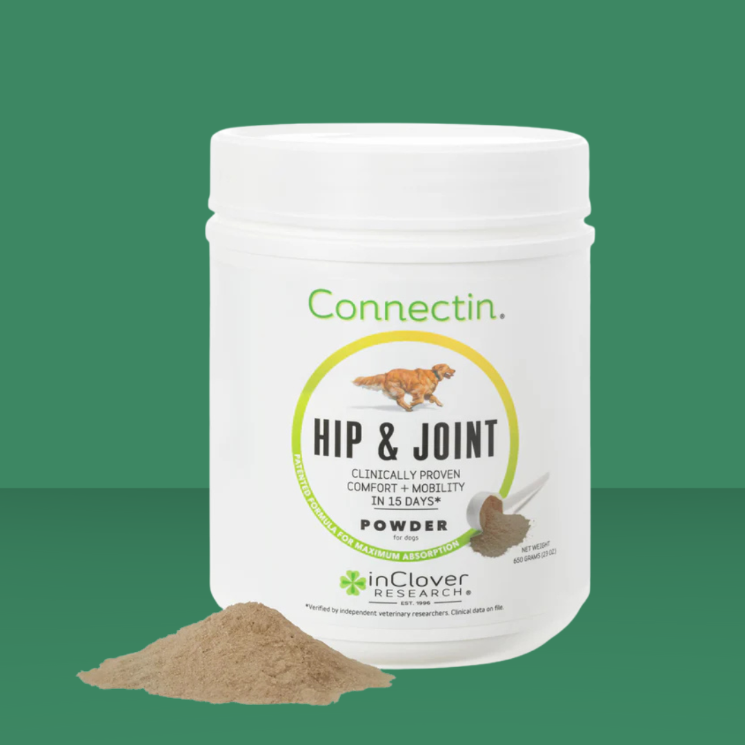 Is your dog starting to slow down or avoid jumping- or maybe you just want to make sure those hips stay healthy as long as possible? This powder is an easy way to support healthy hips and joints to keep your pup going! InClover's Connectin is clinically proven by independent researchers to help support comfort and mobility in an average of 15 days (though every dog is different- just depends on their body!) Their patented formula with nourishes the joint and its surrounding structures to support stiff, aging bodies, or help protect young & healthy joints!