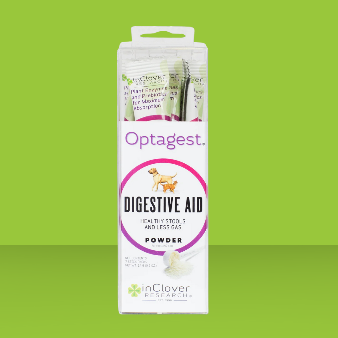 Optagest is an excellent choice as a daily supplement to support good digestive and immune health, or to help your pet maintain intestinal balance during stressful events like changing food brands, traveling or when you are away. This handy little powder is scientifically formulated and clinically tested, designed to provide optimal GI support, settle upset tummies, increase the bioavailability of nutrients in food, and to support good digestion in your cat or dog!  The natural plant enzymes, prebiotics and probiotics in Optagest are designed to work with your pet’s system to help break down the fat, protein, fiber, and carbohydrates in food-making the nutrients more bioavailable. Since 70% of the immune system is housed in the digestive tract, keeping your pet's gut healthy will support and boost their immune system!  Optagest is so easy to use-just sprinkle it on your dog or cat’s food daily!