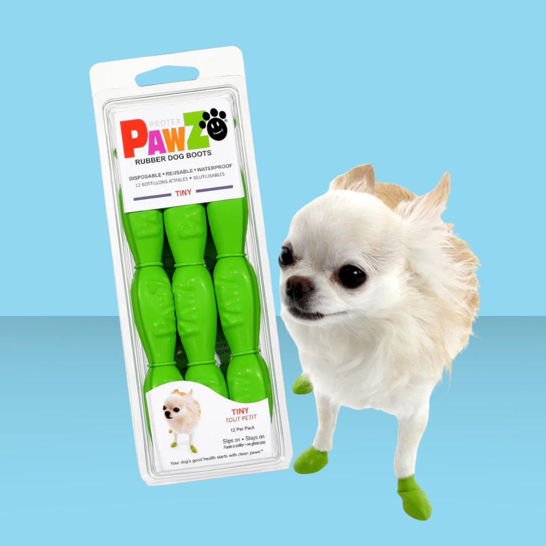 Between salt, snow, hot pavement, or mud, it doesn't take much to irritate your pup's paw pads! These disposable boots are perfect for protecting your dog's paws from the world- or even protecting something delicate (like an above-ground pool!) from their paws! Like a sock, PawZ moves with your dog, allowing for full paw motion and maximum comfort. Without padding or sole, PawZ allows your dog to feel the ground, providing the needed sense of security not possible with a typical dog boot. This is the main reason why dogs that won’t wear dog boots will wear PawZ! There are 12 individual boots per package, and for the highest chance of re-wearability, we recommend making sure your dog's nails have been trimmed.