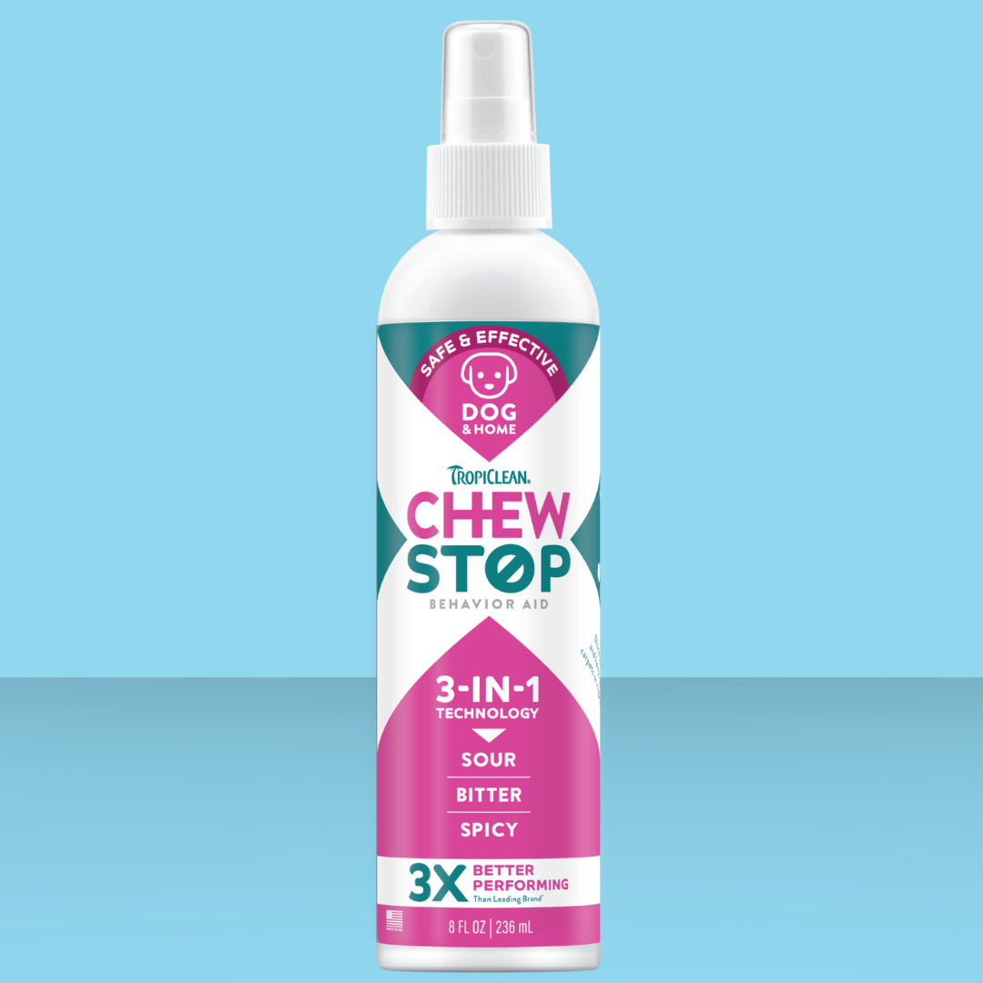 Do your computer cords keep falling to pieces? Do your plants have suspiciously bite shaped holes? TropiClean Chew Stop Dog & Home Spray is the perfect solution to protect your home and teach your pets better habits! This spray helps prevent destructive chewing on furniture, shoes, cords, and other household items along with helping pets avoid wounds & hot spots. Its natural, non-toxic formula uses flavors pets dislike, helping them quickly learn to avoid unwanted chewing and licking behaviors. Easy to apply and safe for everyday use, it’s your go-to for keeping your home intact while training your furry friends with gentle, effective deterrence.
