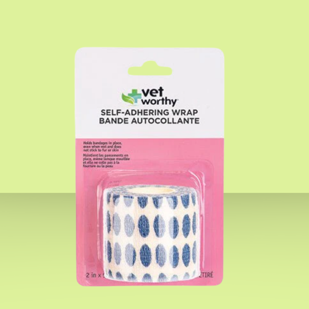 Accidents happen- and us pet owners want to make sure any injuries heal without our pets accidentally hurting themselves more. Keep those wounds safe and secure with this self adhering tape. It's great for wounds on legs and paws- put the gauze pad or wrap directly on the injury, and wrap with the tape- since it's made to adhere only to itself, it will hold the gauze in place without pulling on hair, skin, or the gauze itself. It even works if it gets wet! Vet Worthy Self Adhering Tape is 2 inches by 15 yards.