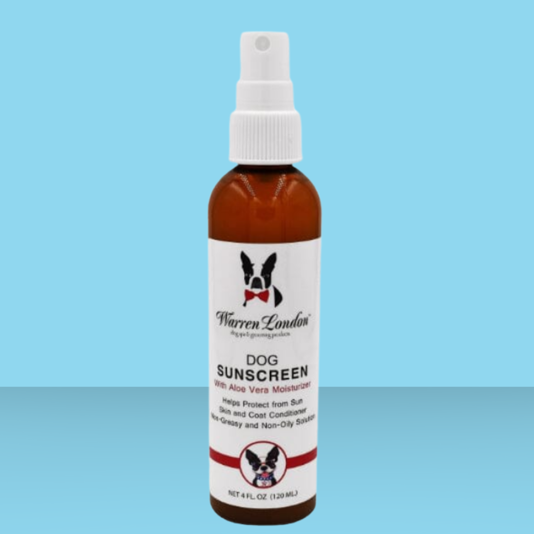 Protect your furry best friend from the sun with Warren London Dog Sunscreen! This year-round spray provides essential UV protection for your dog's coat, nose, snout, and ears. Enriched with natural Aloe Vera, it also moisturizes and soothes dry and itchy skin. Suitable for all coat types and breeds, this is a must-have for any dog's beach or pool day.