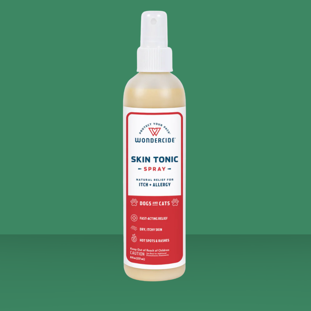 Wondercide Skin Tonic Spray is a powerful, multi-functional solution that provides soothing relief for dry, itchy, irritated skin, sun burns, hot spots, and other skin issues. Featuring cold-pressed neem oil and other good ingredients, this spray is safe for dogs and cats of all ages when used as directed. It soothes so your pup can go enjoy their naps!