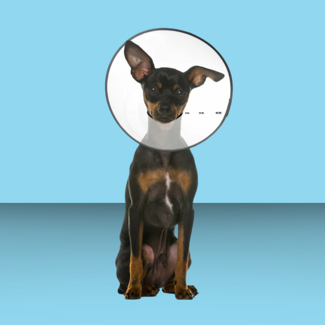 Don't be fooled by this traditional "cone of shame." It's made to protect your pet in comfort, so they can heal safely. The cone is completely transparent so your pet can see the world around them, reducing bumping into things as well as reducing stress, is padded around their neck for comfort, and the outer edges are padded with a "no mark" material, so if they bump into furniture or walls, it won't damage them.