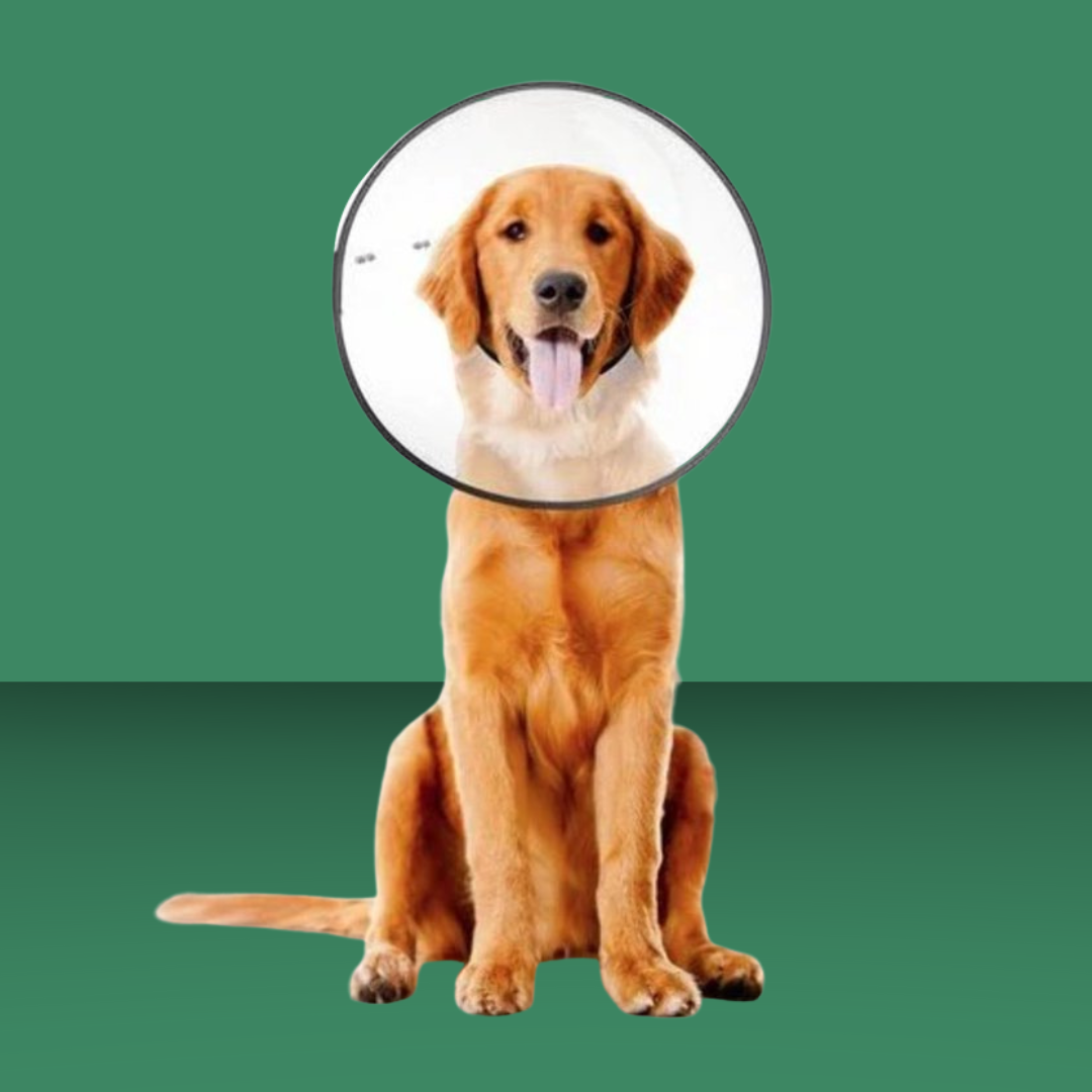 Don't be fooled by this traditional "cone of shame." It's made to protect your pet in comfort, so they can heal safely. The cone is completely transparent so your pet can see the world around them, reducing bumping into things as well as reducing stress, is padded around their neck for comfort, and the outer edges are padded with a "no mark" material, so if they bump into furniture or walls, it won't damage them.
