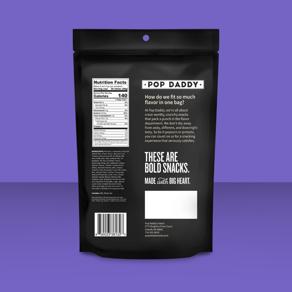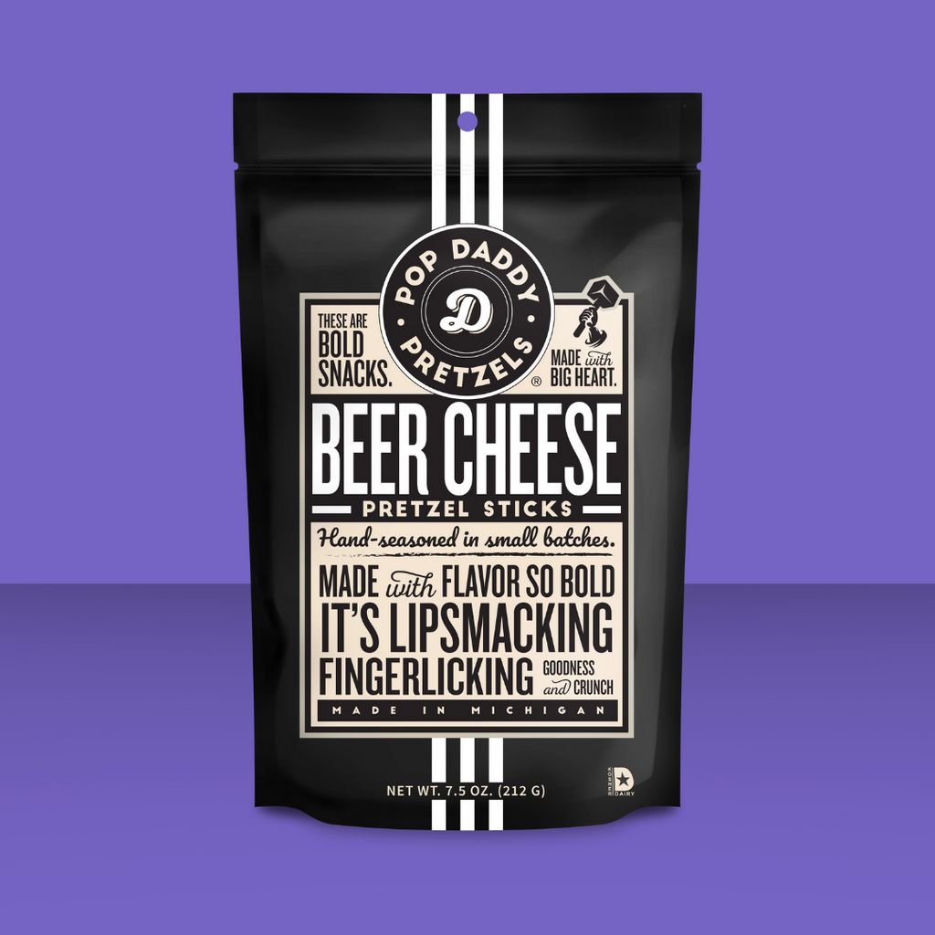 When in doubt Beer & Cheese! These pretzels are a delicious blend of real cheese seasoning, and the aromas of a cold craft brew. A match made in all the right ways.