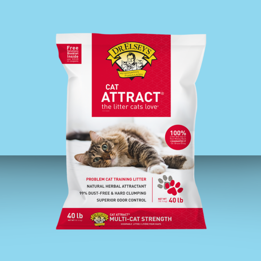 Cat Attract Litter provides a solution for cat owners whose cats do not use their litter box. Blended with a natural herb attractant, the ideal texture and particle size combine to solve litter box problems with an effective solution guaranteed to bring cats back to the litter box. Cat Attract is perfect for single or multi-cat families and has superior clumping and a natural chlorophyll odor control.