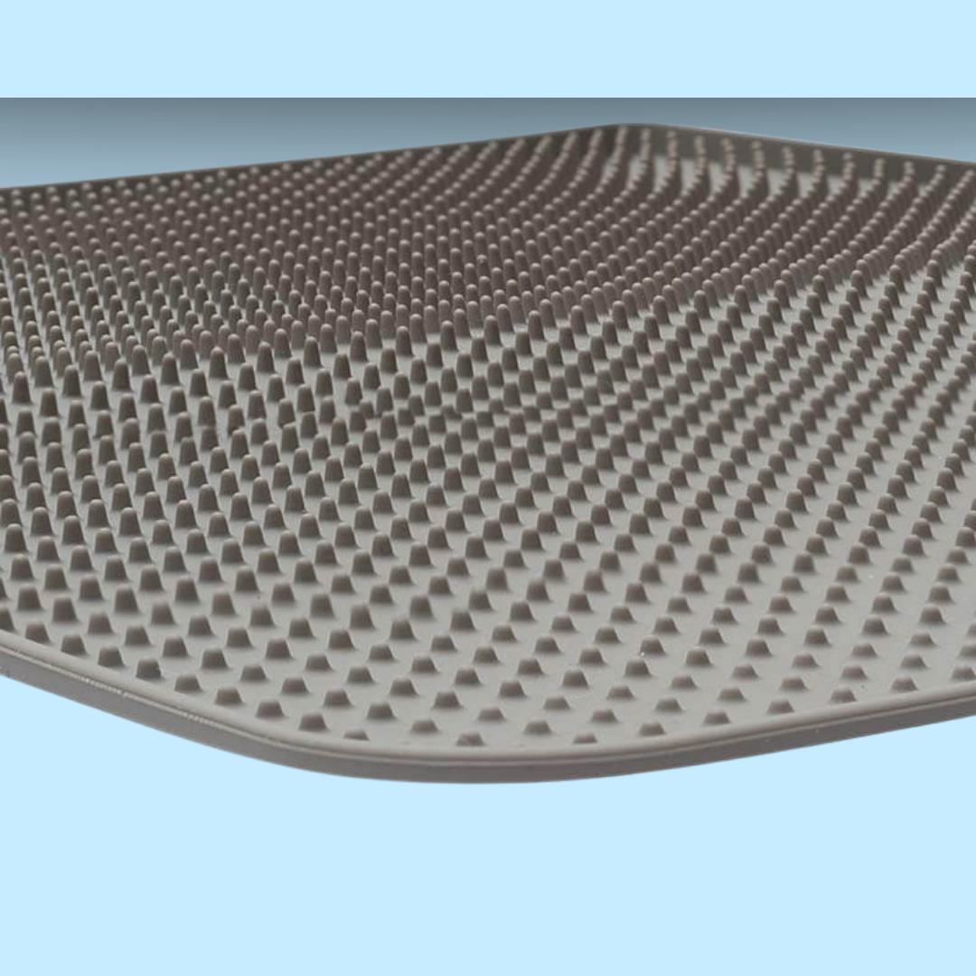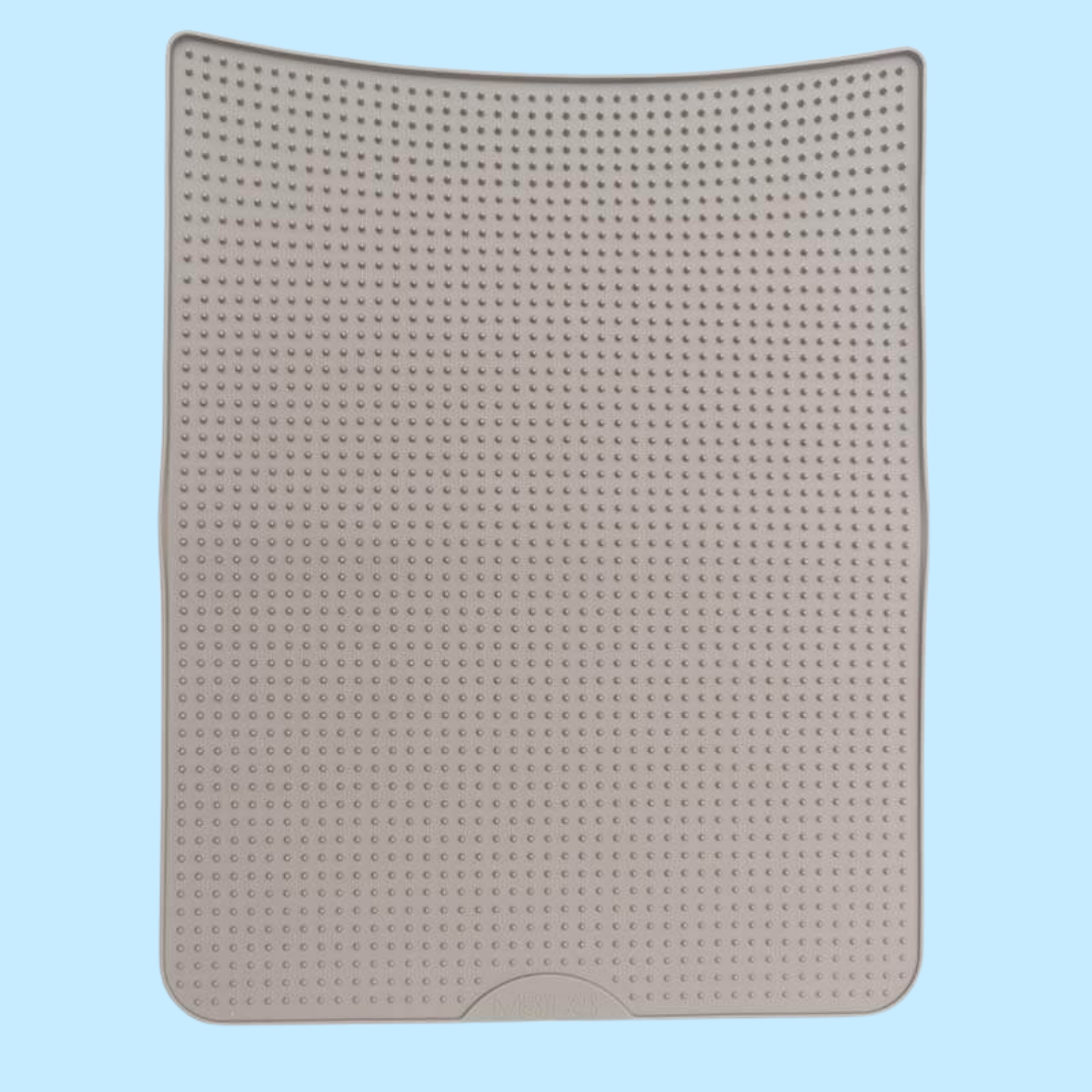 Nobody likes dirty paws from the litter box- this mat will help keep everything much cleaner! The soft silicone spikes graduate from long to short to trap the grit while being gentle on your messy cat’s sensitive paws, and it's super easy-to-clean! Plus, the silicone mat won't slip and slide on hardwood floors. 18" x 14"