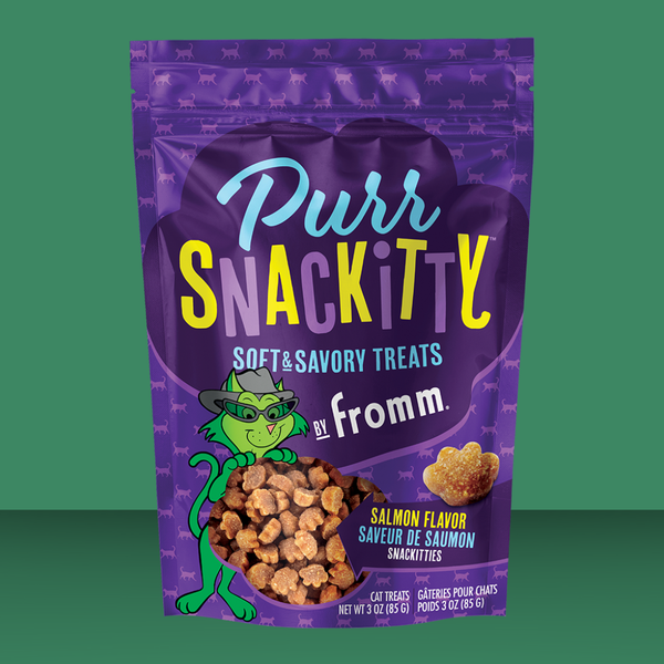 Your kitty will love the soft and savory texture, making them perfect for training sessions or just as a well-deserved treat throughout the day. With only 2 calories per treat, they're a great choice for keeping your pet healthy while strengthening the bond between you. Made with real salmon, these PurrSnackitty cat treats are a testament to Fromm's commitment to using high-quality ingredients- and that means a flavor worth purring over!