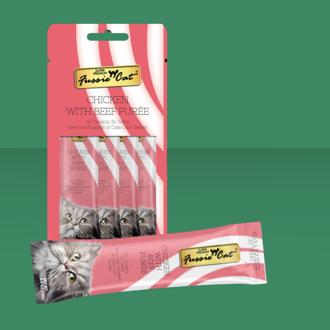 Want a treat your cat will love at first lick? Try Fussie Cat Puree sticks! They're super creamy and indulgent tasting, and cats absolutely love it! Plus, it's an easy-to-feed cat treat with essential vitamin E for your cat’s diet to support healthy skin and coat.